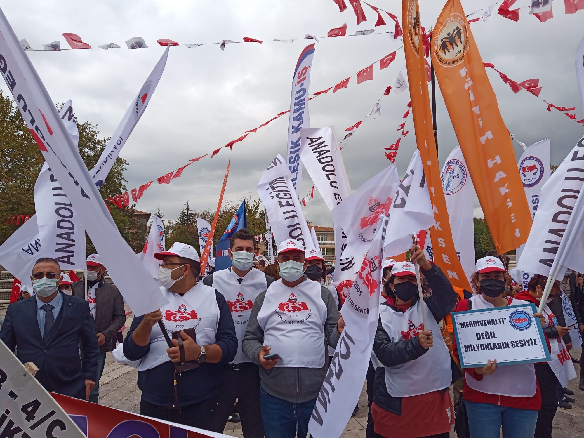 MEMURLAR ANITPARK’TAN HAYKIRDI: “TOPLU SÖZLEŞMEYİ DE % 1’LİK SENDİKAL KOTA HUKUKSUZLUĞUNU DA TANIMIYORUZ!”