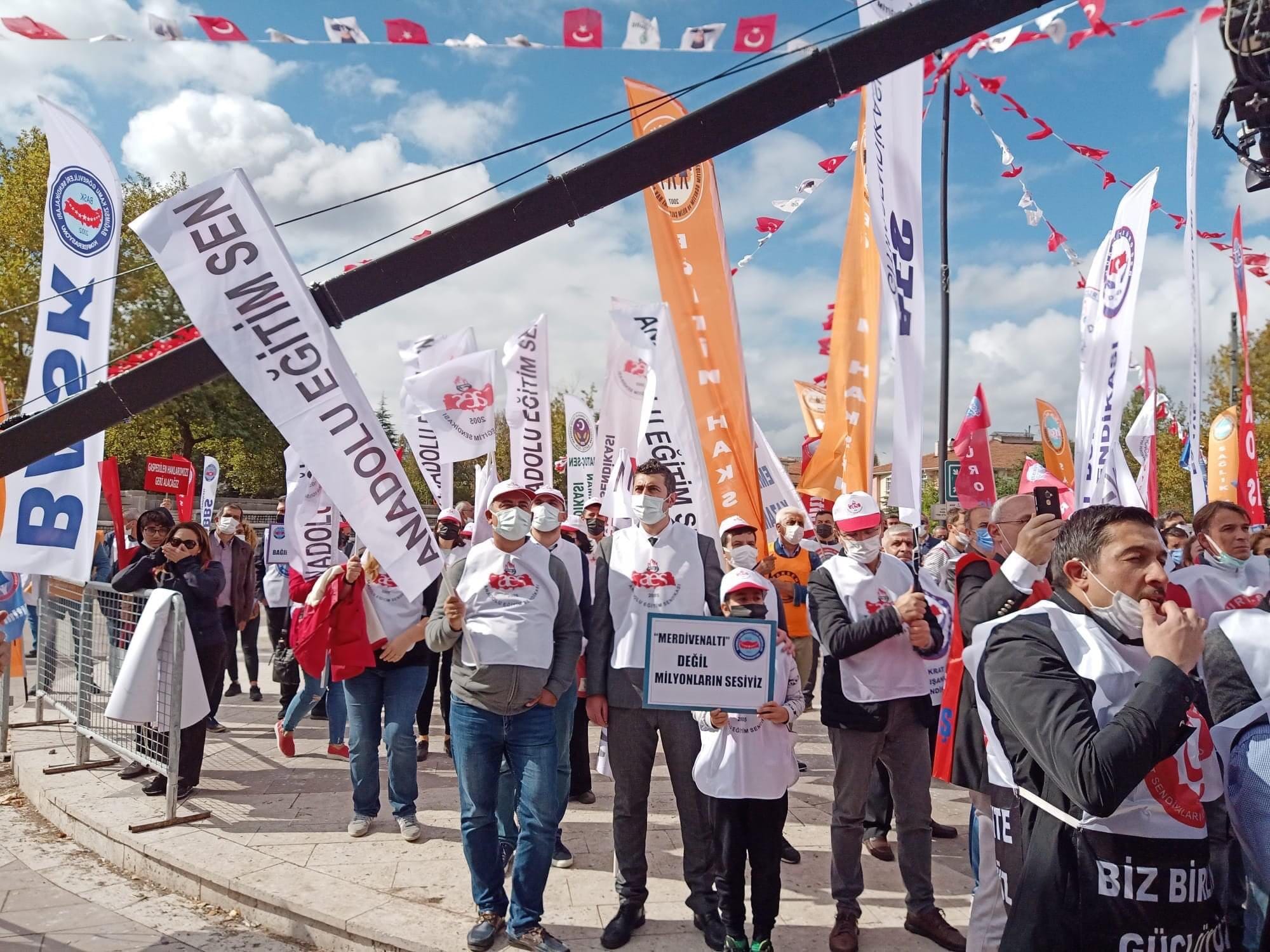 Anıt Park’ta yükselen bu kararlı iradenin sesi sendikal kazanımlardan asla geri adım atmayacaktır.